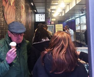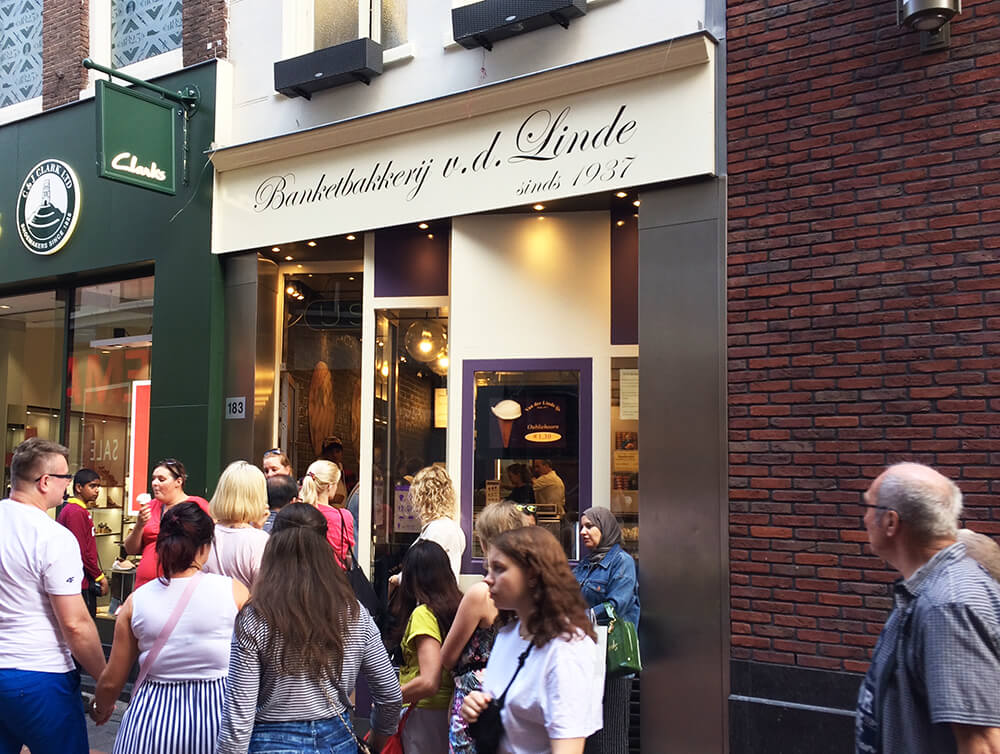 ニューウェンダイク通りの有名ショップのヘマ(HEMA)プライマーク(Primark)の間にあるVan der Lindeは四季を問わず行列のできるアイスクリーム屋さんです。